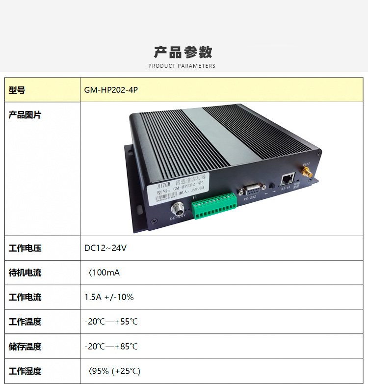 • 超高頻GM-HP202-4P UHF四通道遠距離固定式讀寫器