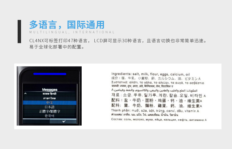 - ● 內(nèi)置47種打印語(yǔ)言,30種LCD顯示語(yǔ)言。