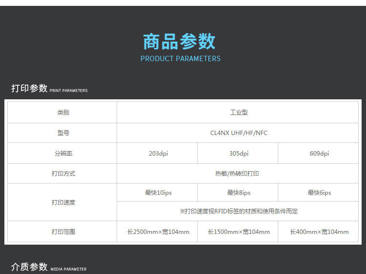 詳細(xì)參數(shù) 基本參數(shù) 型號(hào) CL4NX 打印參數(shù) 203dpi,熱敏和熱轉(zhuǎn)印,10ips(254mm/s),104mm,2500mm 條碼類型 一維條碼:39碼、UPCA、UPCE、交叉25碼