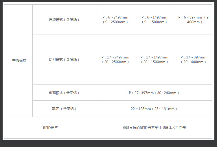 打印模式:連續(xù)、撕紙、切刀、剝離 感應(yīng)模式:間隙感應(yīng)(穿透模式)、黑標(biāo)感應(yīng)(反射模式)、紙張用盡、碳帶用盡、碳帶即將用盡; LED指示器:藍(lán)/紅色 警報(bào)聲音:蜂鳴聲(3級(jí)音量) 自檢功能:打印頭、切刀開(kāi)啟,待機(jī),自動(dòng)檢測(cè) 顯示屏:TFT全彩LCD,3.5"(320x240) 多語(yǔ)言支持:內(nèi)置47種打印語(yǔ)言,30種LCD顯示語(yǔ)言 操作視頻預(yù)置:18個(gè)視頻(耗材安裝,部件更換,清掃,設(shè)置RFID天線) 遠(yuǎn)程協(xié)議:SNMP ver3,HTTPs 構(gòu)造:鋁壓鑄(底部,框架,前蓋,碳帶軸,打印頭裝置) 機(jī)身側(cè)蓋:省空間雙折疊式,含大視窗 底盤(pán)安裝:3孔固定,可平面或傾斜安裝 |