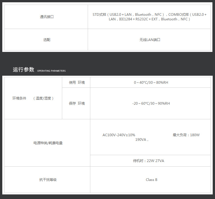 標(biāo)配:USB2.0接口(Type A,Type B),Ethernet(IPv4/v6)(機(jī)身后面),USB2.0接口(Type A)(機(jī)身前面),RS-232C,IEEE1284,EXT(標(biāo)準(zhǔn)接口板),Bluetooth Ver3.0 選配:Wireless LAN kit(Wi-Fi and CCX認(rèn)證),IEEE 802.11a/b/g/n,雙頻(2.4GHz,5GHz),100MB,22-128mm,0.06-0.268mm,雙CPU&雙操作系統(tǒng) CPU1:2GB ROM,256MB RAM for Linux操作系統(tǒng) CPU2:4MB ROM,64MB RAM for ITRON操作系統(tǒng),600m,39-128mm,25mm,工商用打印機(jī) |
